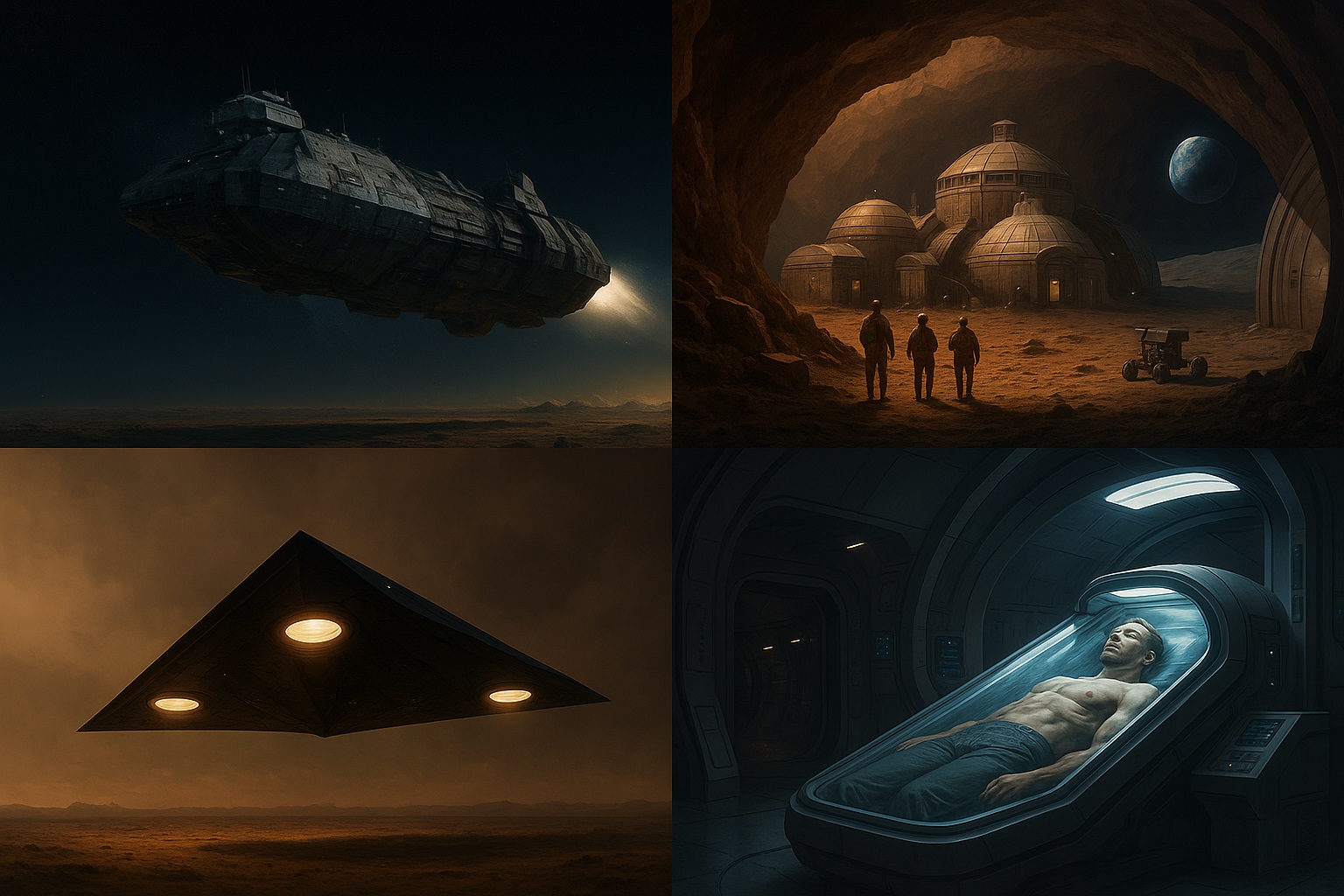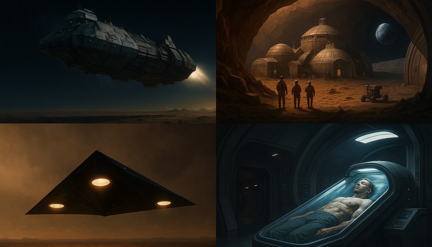• Nav publiski apstiprinātu bāzu uz Marsa vai Mēness, kas atbilst aprakstiem.