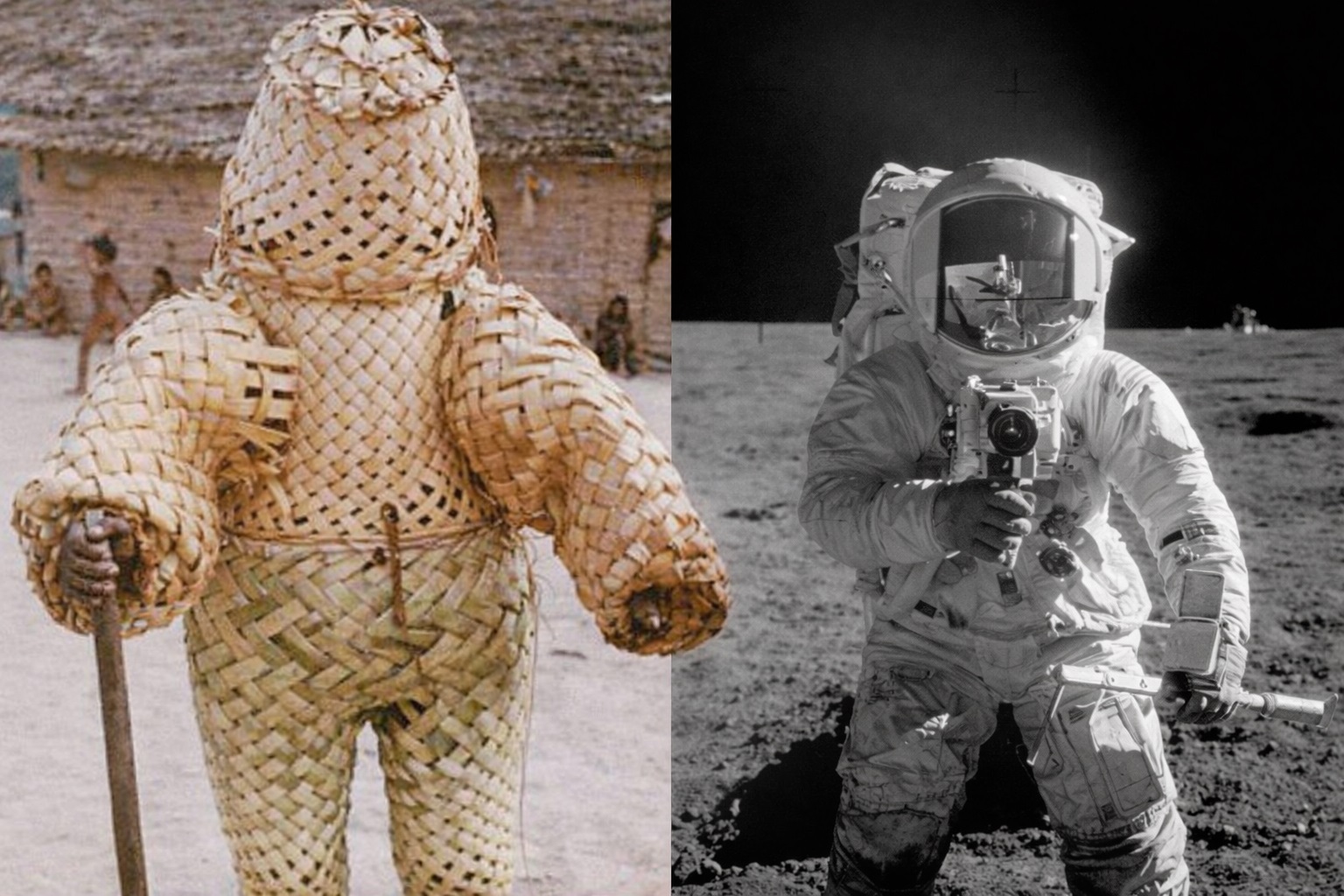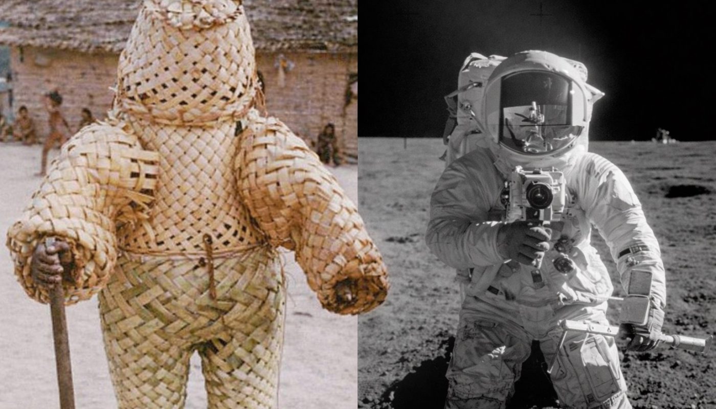Tērps, kas pilnībā nosedz ķermeni, tiek salīdzināts ar kosmosa skafandru. Ierocis ar gaismu un troksni tiek interpretēts kā enerģijas ierīce vai augsti attīstīta tehnoloģija. Pacelšanās debesīs ar skaņu un gaismu tiek salīdzināta ar kosmosa kuģa startu.