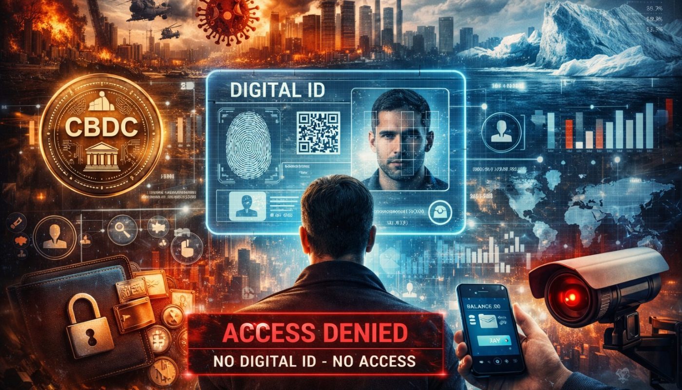 Pēdējo gadu laikā sabiedrībā arvien biežāk parādās bažas par to, ka dažādas globālas krīzes — pandēmijas, kari, klimata pārmaiņas un ekonomiskā nestabilitāte — tiek izmantotas kā instruments, lai ieviestu jaunu digitālās pārvaldības modeli. Šī ideja bieži tiek dēvēta par digitālās identitātes un pilnīgas kontroles teoriju.