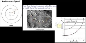 - Klavis krāterī redzamie mazie krāteri tiešām veido izliekumu, ko var pielīdzināt matemātiskai spirālei.